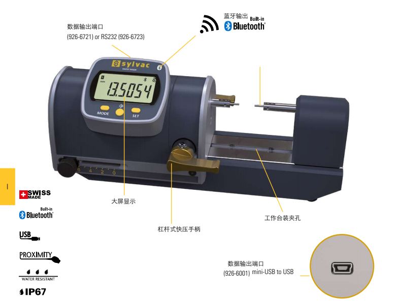 ■符合人体工程学的快压式旋钮,从而使测量头通过滚珠轴承导轨实现平稳快速移动